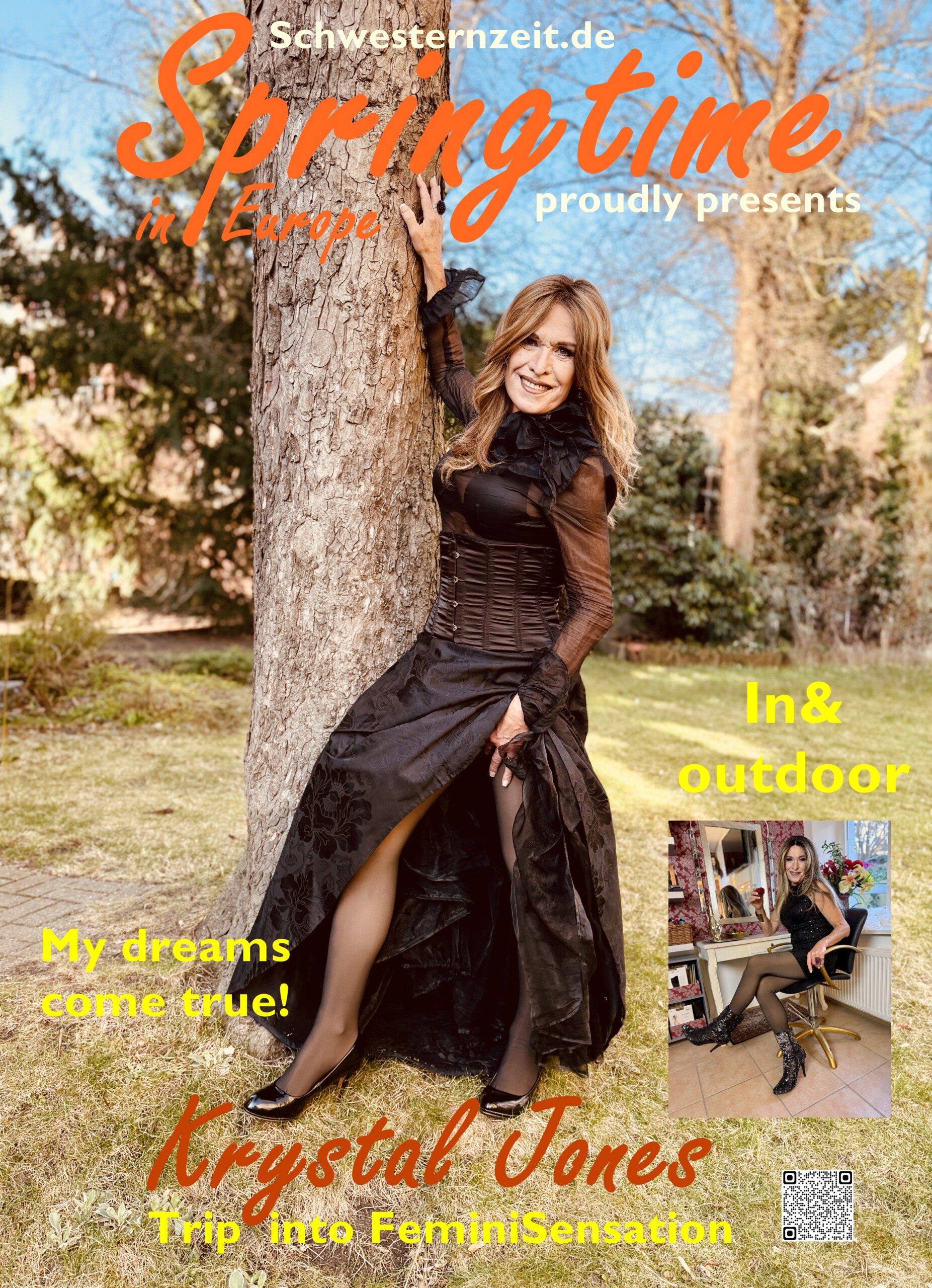 This was my third visit to Schwesternzeit, and each time the transformation into Krystal has been unforgettable. Now in my mid-60s, achieving a convincing look took time and care, but Karin’s attention made it absolutely worth it. The makeup and styling were stunning—her aesthetic is exceptional, and the wardrobe is fantastic. She also took some beautiful photos of me.